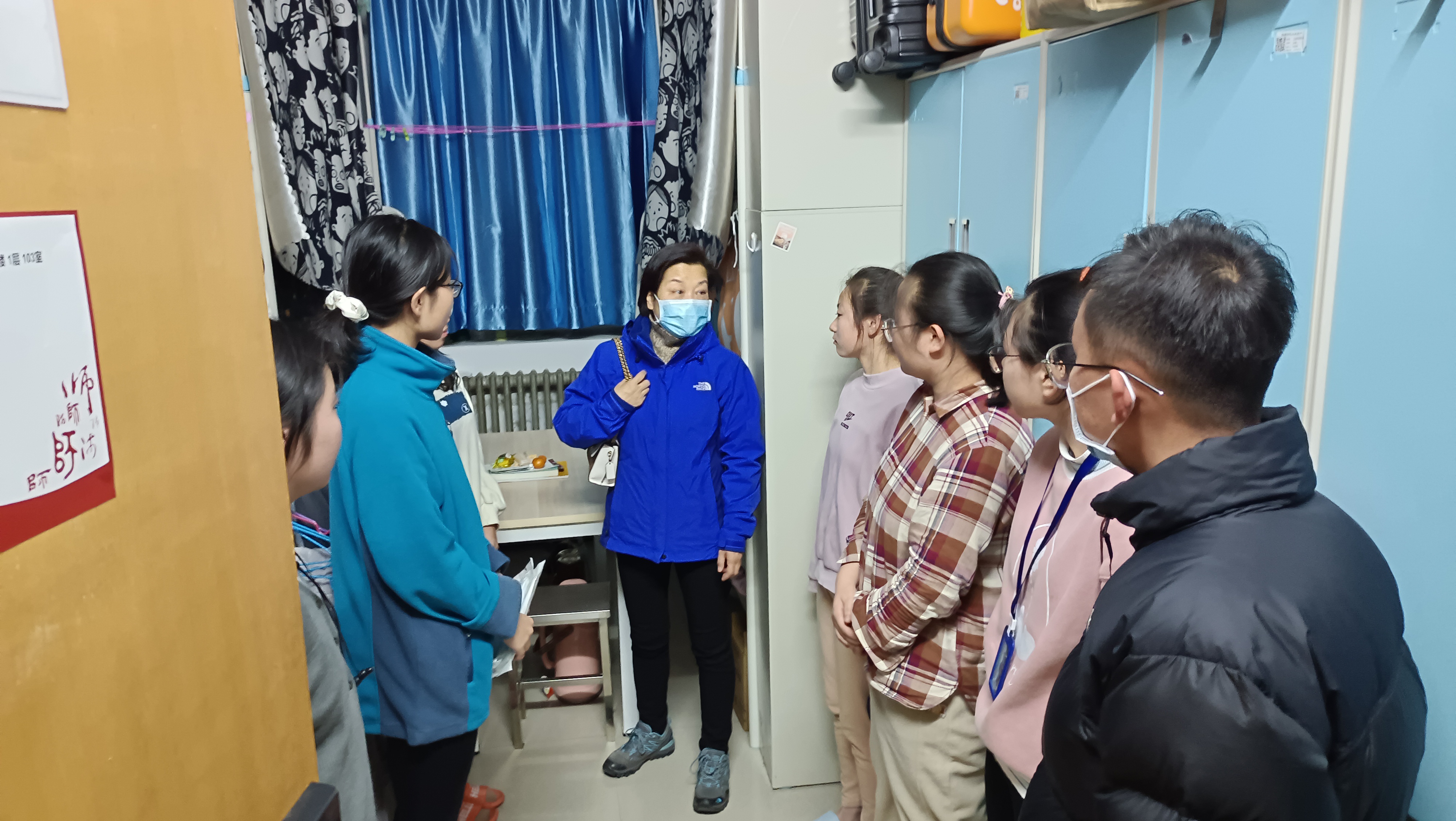 深入员工宿舍过程中,靳春泓就西安市雁塔区以及公司的各项防疫政策向同学们做了详细解读,并就同学们普遍关心的问题进行了解答。她强调,近期,西安三地调整为中风险地区,疫情防控形势严峻,希望同学们积极配合做好疫情防控的各项工作,同时也告知同学们也不必紧张,学校、学院会给大家提供强有力的保障。