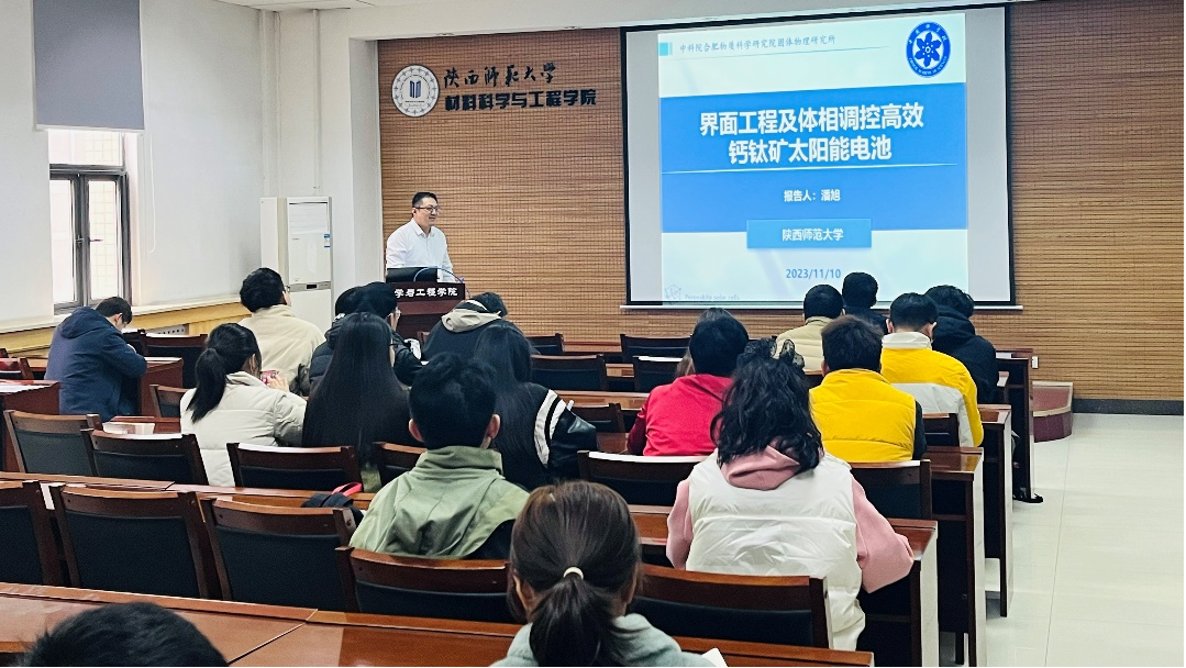 潘旭研究员以“界面工程及体相调控高效钙钛矿太阳电池”为题,讲述了随着可再生能源的需求日益增长,钙钛矿太阳电池因其高效、低成本和可控可调性受到广泛关注。钙钛矿太阳电池现阶段的研究主要关注效率与稳定性,界面工程是提高电池效率和稳定性的关键,通过优化电极/钙钛矿和钙钛矿/载流子传输层的界面,可以有效减少界面缺陷和提高载流子的传输效率。潘老师通过分析影响钙钛矿太阳电池效率和稳定性的本质因素,结合团队多年来在该方向的研究积累和最新进展,详细透彻的揭示了钙钛矿太阳电池实际应用面临的挑战,同时指出了解决当前问题需要努力的方向,如通过调整钙钛矿材料的晶体结构和组成,实现对电池的光吸收、载流子动力学和稳定性的优化等。