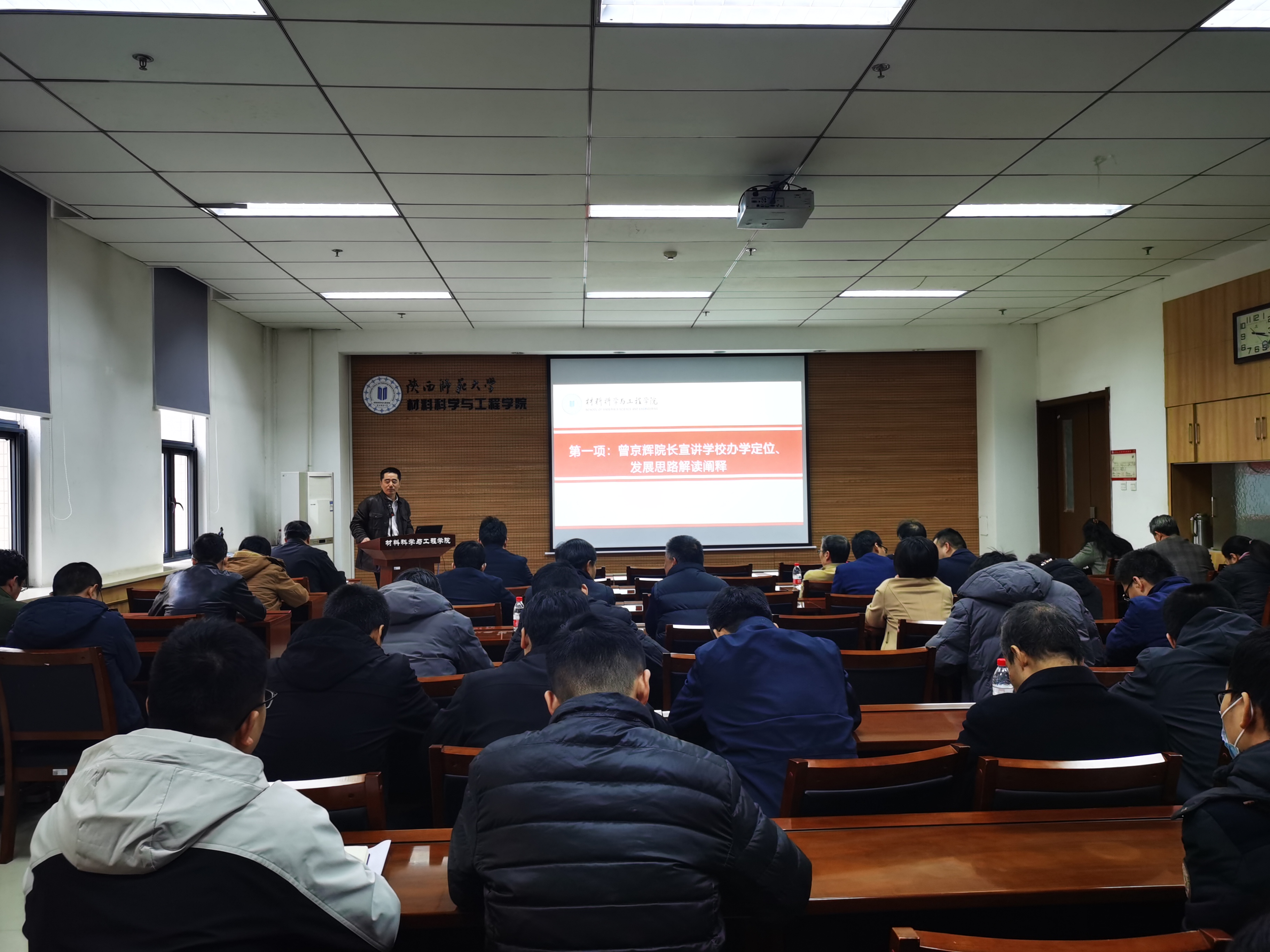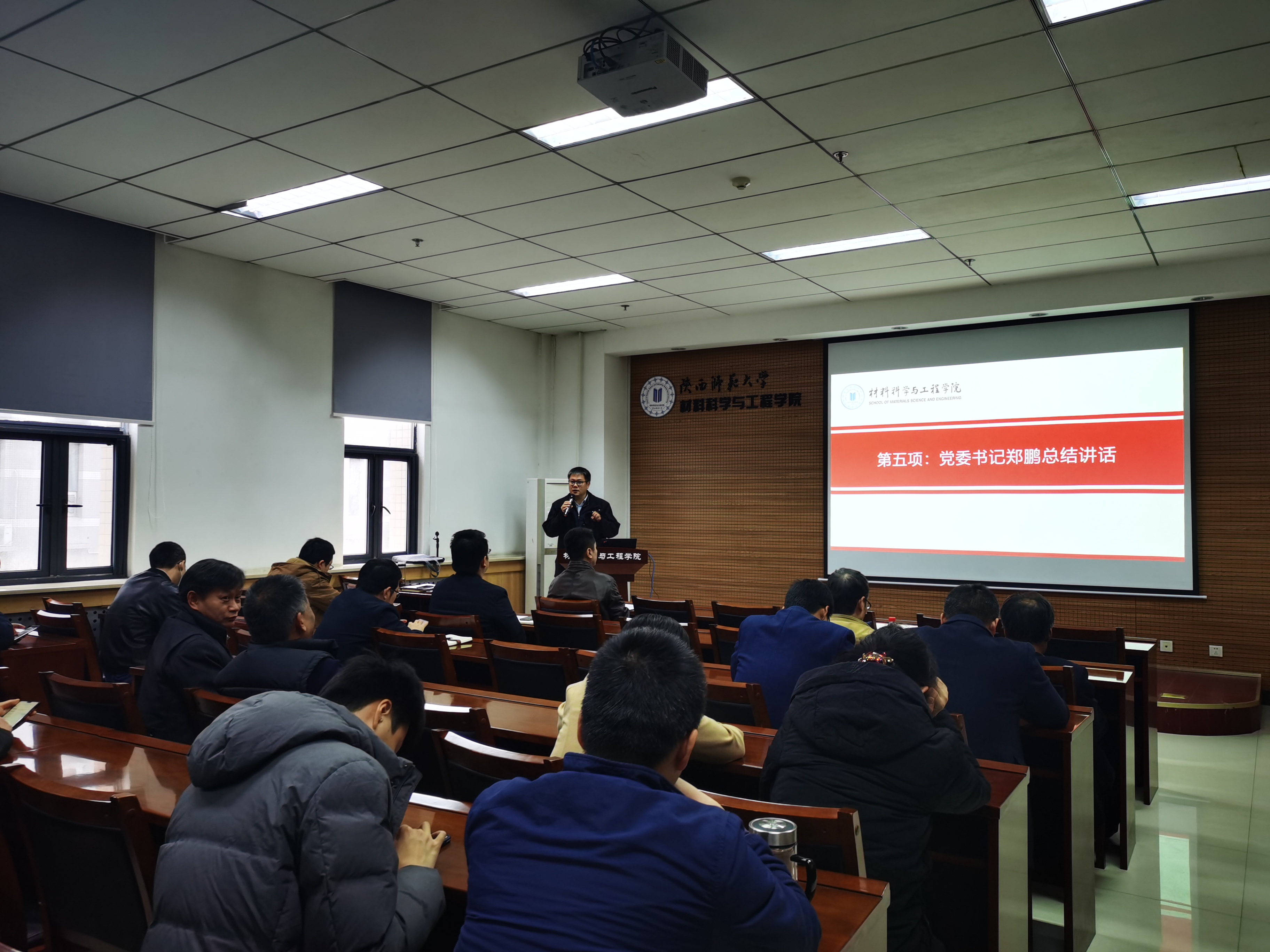 11月29日,学院在致知楼2307报告厅召开全院教职工大会,会议由党委书记郑鹏主持。