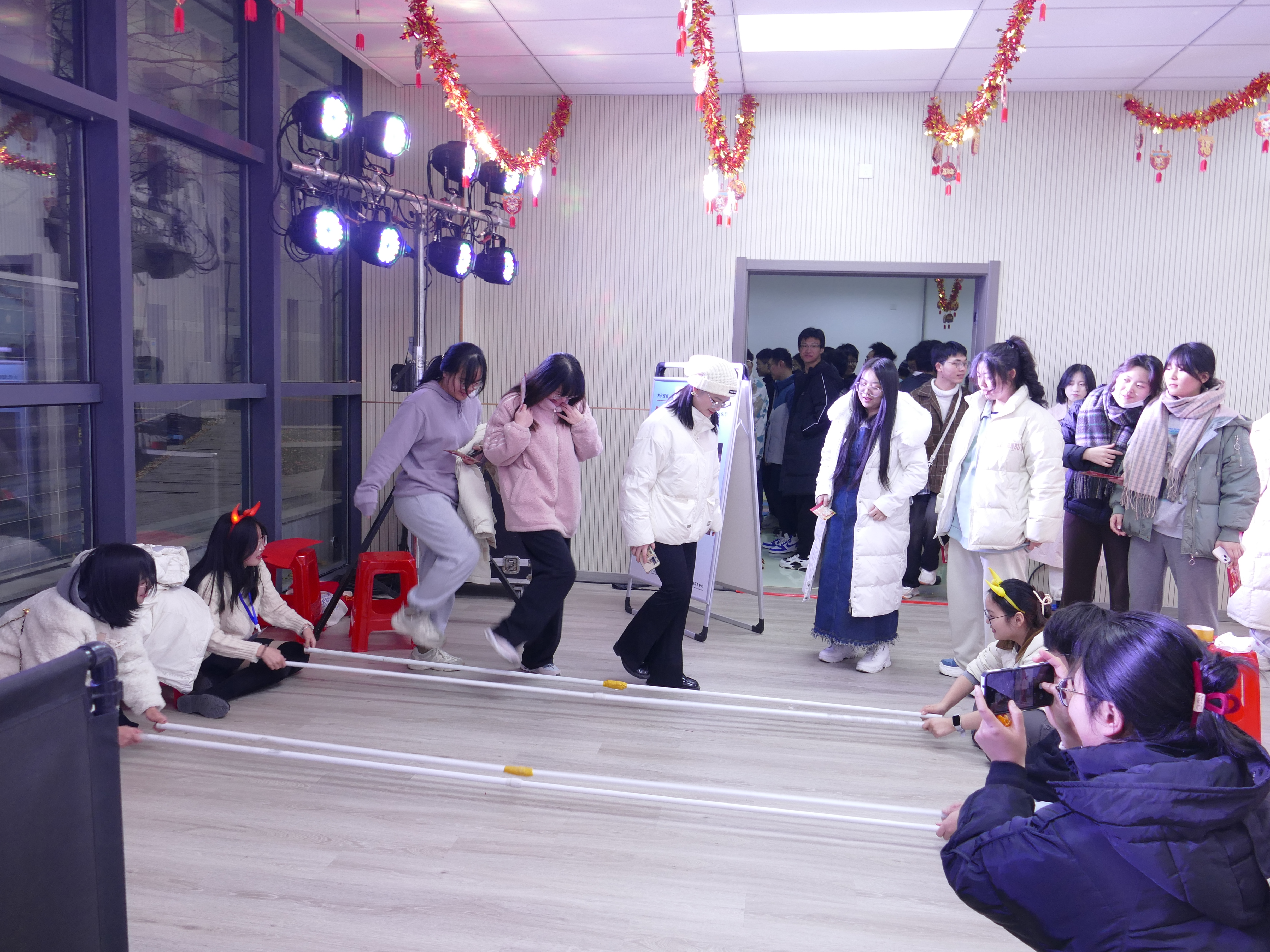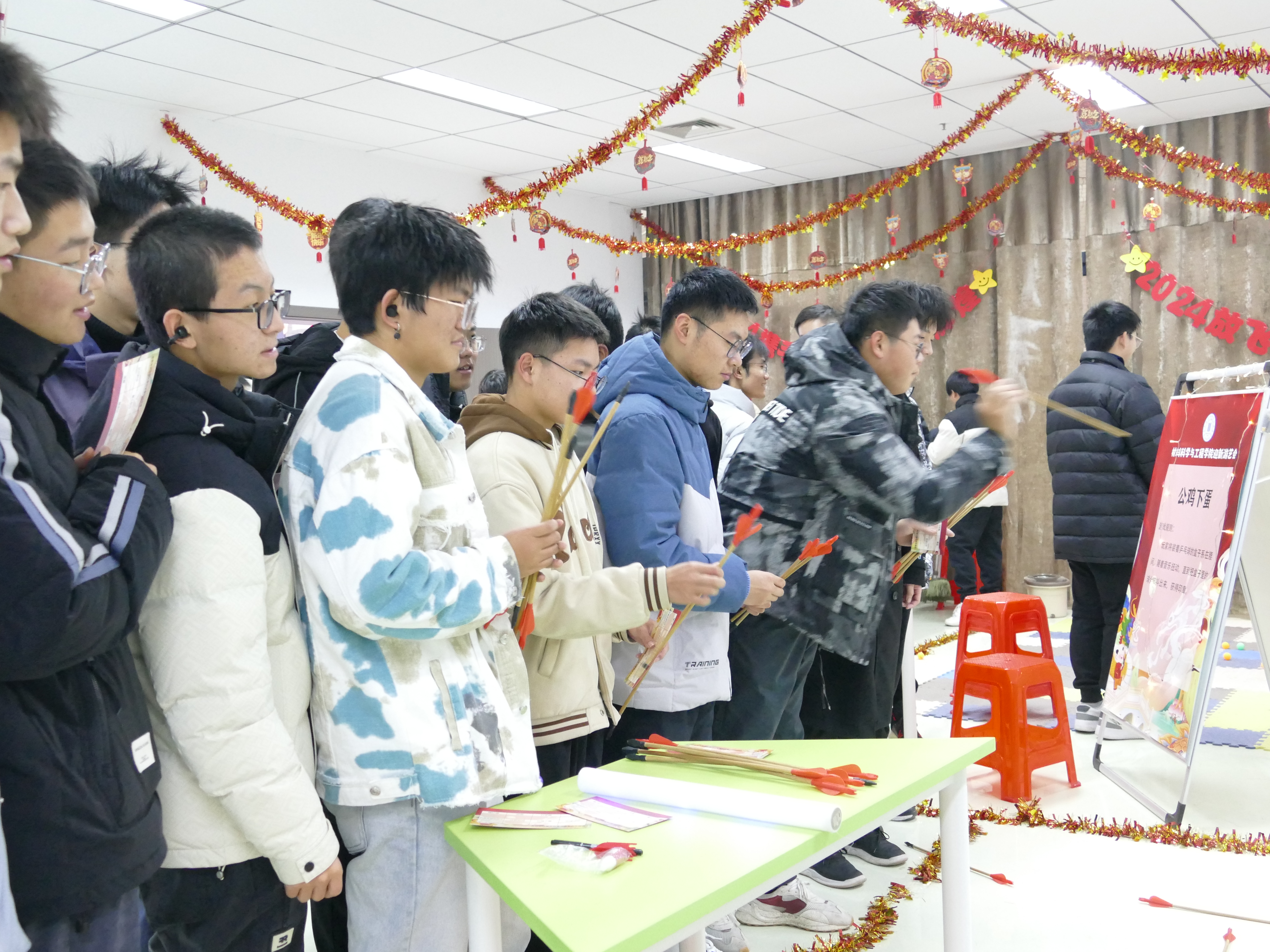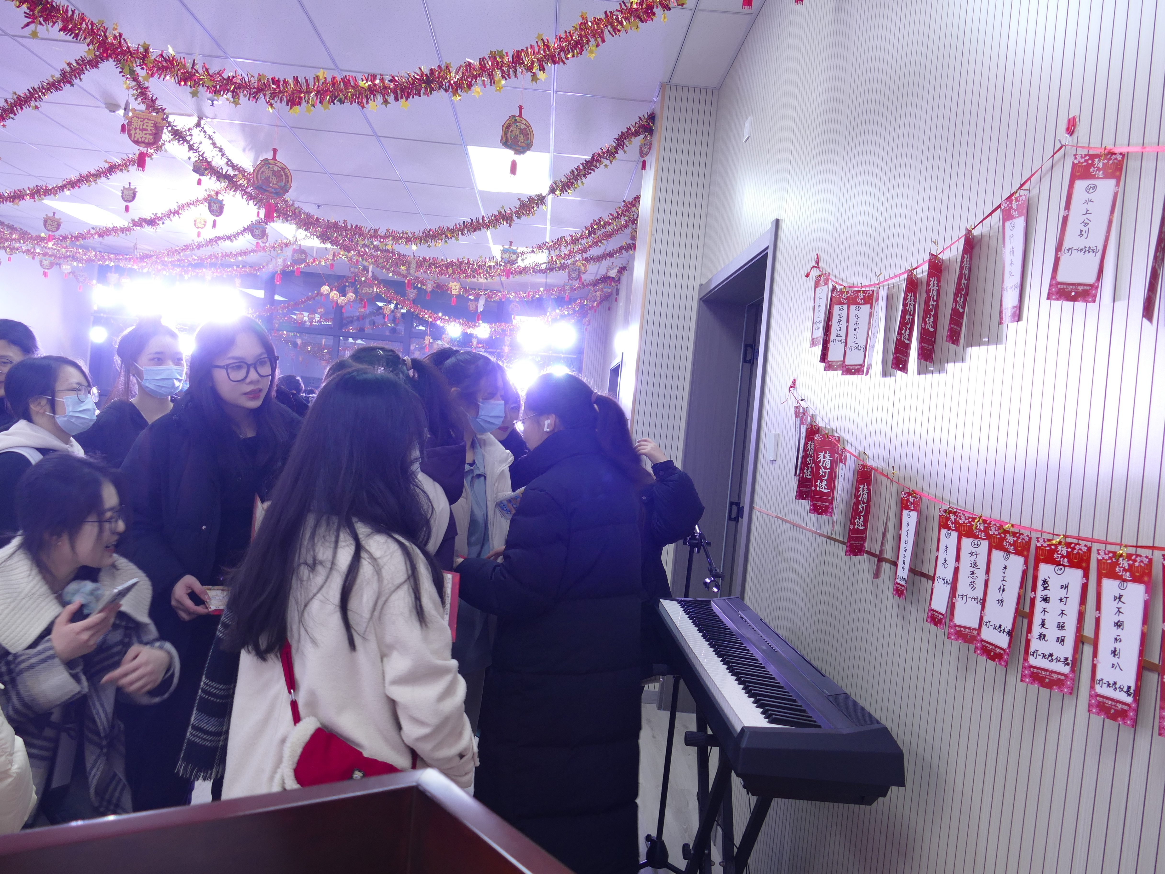 首先是游艺会,会场共设置了猜灯谜、投壶、竹竿舞、舞龙4个传统文化体验活动,以及挤眉弄眼吃饼干、过桥拆河、公鸡下蛋、吹球过河4个趣味游戏。工作人员现场为每位师生发放了游艺卡,师生根据游艺卡提示进行现场闯关,完成4个游戏即可获取学院准备的新年福袋。活动现场还为同学们准备了新年心愿墙和便利贴,师生们将新年的祝福和期待写在心愿墙上。