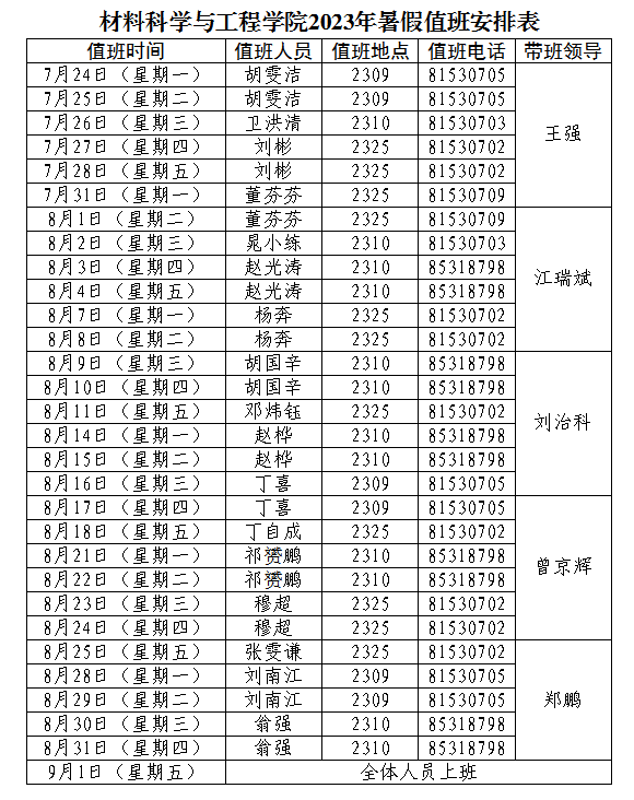 (二)行政、学工和实验系列人员在保障各项工作正常运转情况下,自7月22日(星期六)起安排轮休,9月1日(星期五)正式上班。